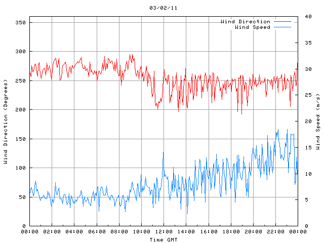 - Max Wind Speed: 18.4 ms-1 Time: 23:02:11 GMT
