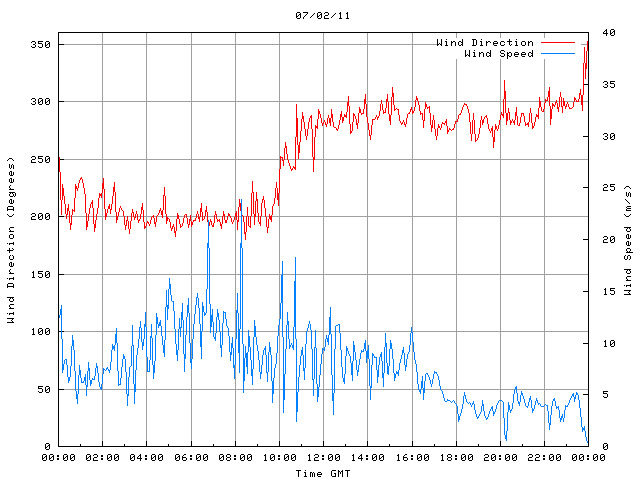 - Max Wind Speed: 23.9 ms-1 Time: 8:17:11 GMT