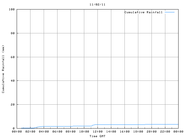 - Max Rainfall Rate: 9.00 mm h-1 Time: 11:12:11 GMT