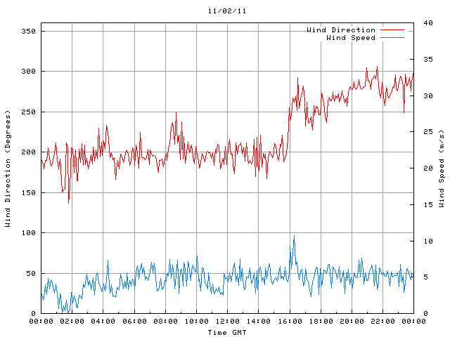 - Max Wind Speed: 10.7 ms-1 Time: 16:17:11 GMT