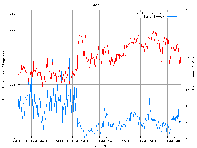 - Max Wind Speed: 25.0 ms-1 Time: 5:02:11 GMT