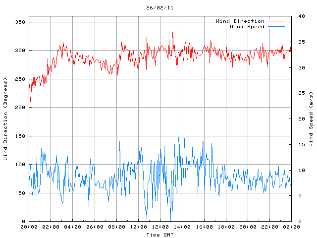 - Max Wind Speed: 16.8 ms-1 Time: 13:42:11 GMT