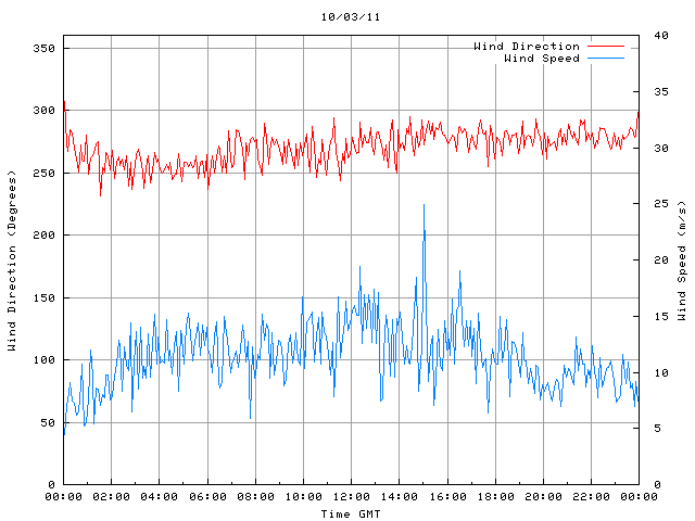 - Max Wind Speed: 25.0 ms-1 Time: 15:02:11 GMT