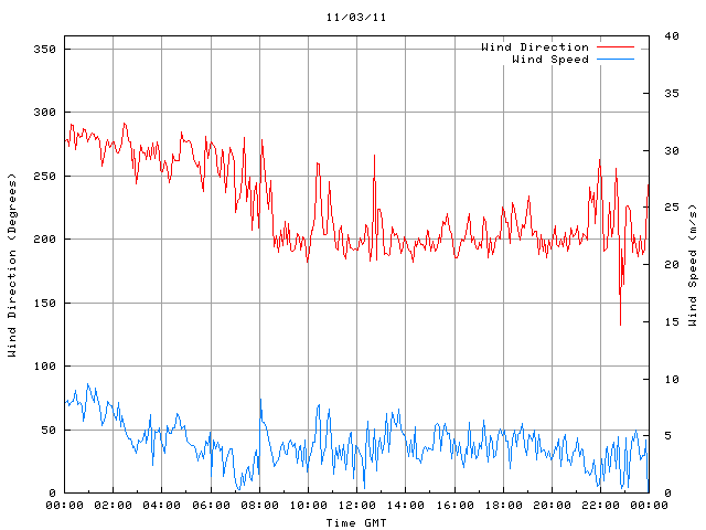 - Max Wind Speed: 9.6 ms-1 Time: 0:57:11 GMT