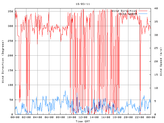 - Max Wind Speed: 9.0 ms-1 Time: 8:52:11 GMT
