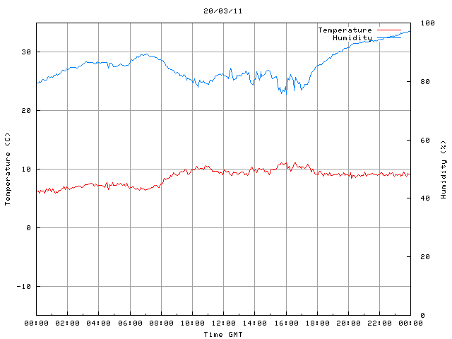- Max Temp: 11.0 °C Time: 15:42:11 GMT