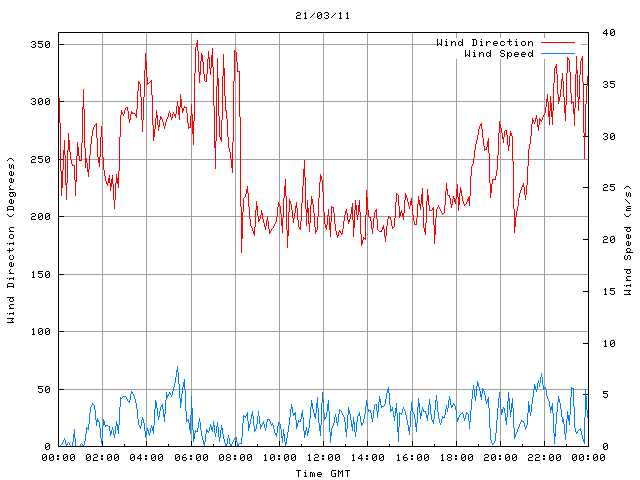 - Max Wind Speed: 7.8 ms-1 Time: 5:22:11 GMT