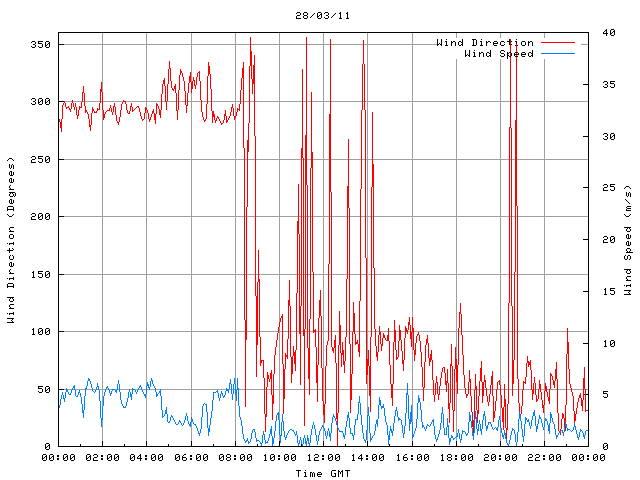 - Max Wind Speed: 6.6 ms-1 Time: 4:12:11 GMT