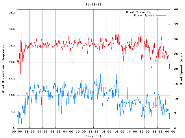 - Max Wind Speed: 20.0 ms-1 Time: 13:02:35 GMT