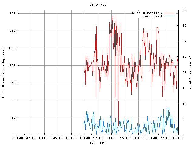 - Max Wind Speed: 9.1 ms-1 Time: 22:31:56 GMT