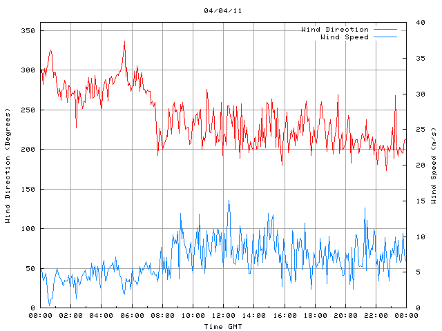 - Max Wind Speed: 15.1 ms-1 Time: 12:20:34 GMT