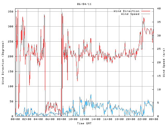 - Max Wind Speed: 8.1 ms-1 Time: 13:06:56 GMT