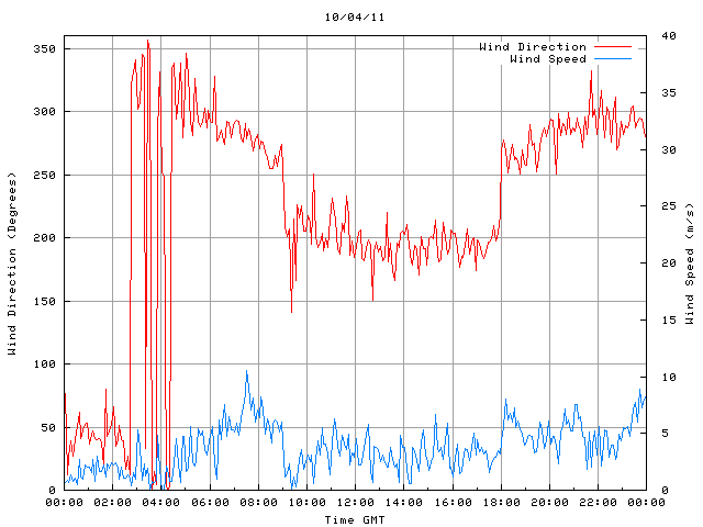 - Max Wind Speed: 10.6 ms-1 Time: 7:31:56 GMT