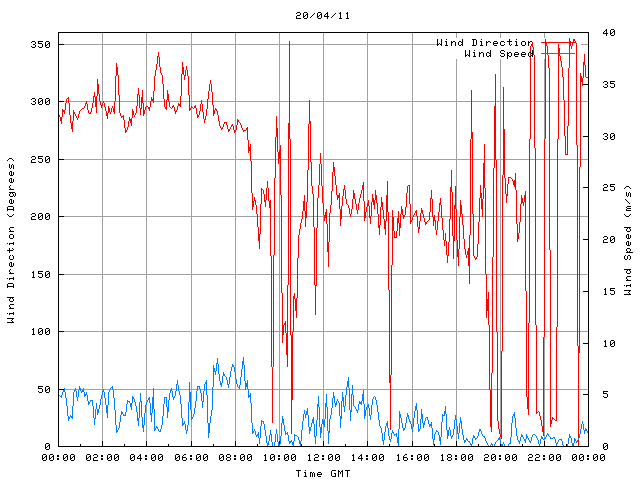 - Max Wind Speed: 8.6 ms-1 Time: 8:21:56 GMT