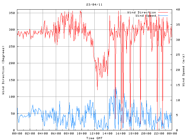 - Max Wind Speed: 14.2 ms-1 Time: 15:16:56 GMT
