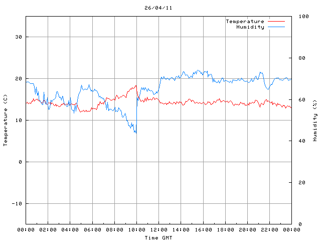 - Max Temp: 18.4 °C Time: 9:56:56 GMT