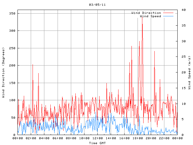 - Max Wind Speed: 7.4 ms-1 Time: 11:41:56 GMT