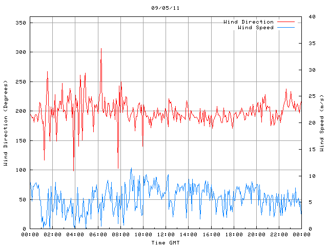 - Max Wind Speed: 11.5 ms-1 Time: 8:56:56 GMT