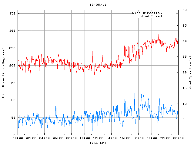- Max Wind Speed: 13.5 ms-1 Time: 17:26:56 GMT