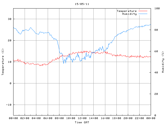 - Max Temp: 15.2 °C Time: 12:17:45 GMT