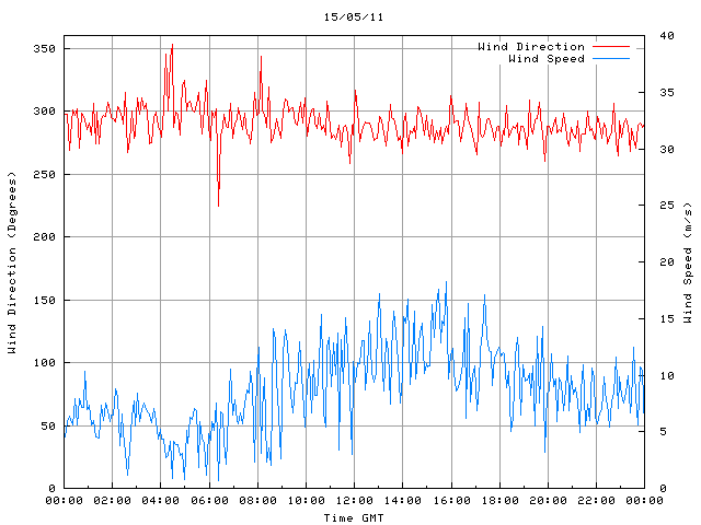 - Max Wind Speed: 18.3 ms-1 Time: 15:47:45 GMT