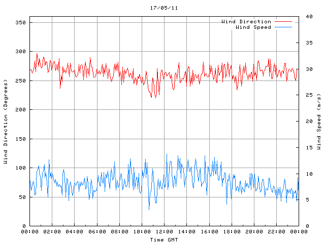 - Max Wind Speed: 13.7 ms-1 Time: 12:12:45 GMT
