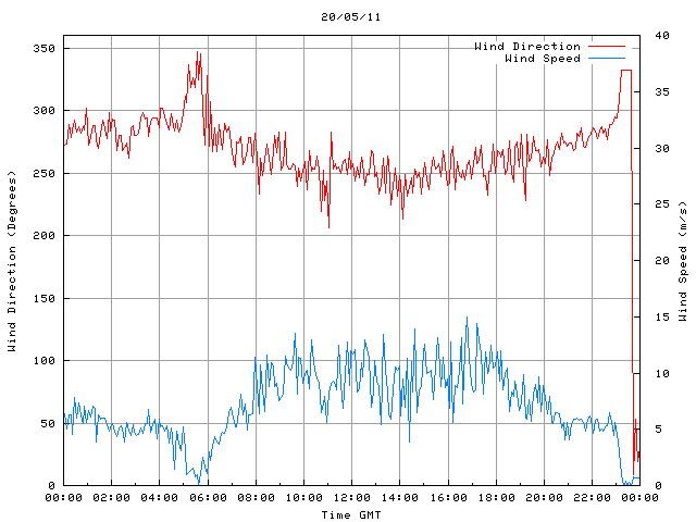 - Max Wind Speed: 15.0 ms-1 Time: 16:47:45 GMT