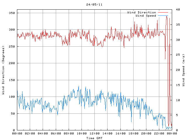 - Max Wind Speed: 14.7 ms-1 Time: 9:32:45 GMT