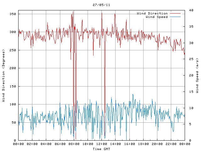 - Max Wind Speed: 14.2 ms-1 Time: 16:27:45 GMT
