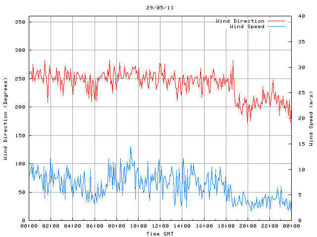 - Max Wind Speed: 14.5 ms-1 Time: 9:17:45 GMT