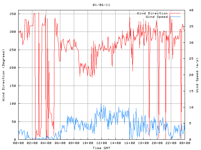 - Max Wind Speed: 11.1 ms-1 Time: 11:52:45 GMT