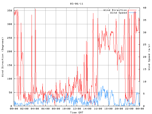 - Max Wind Speed: 8.2 ms-1 Time: 16:57:45 GMT