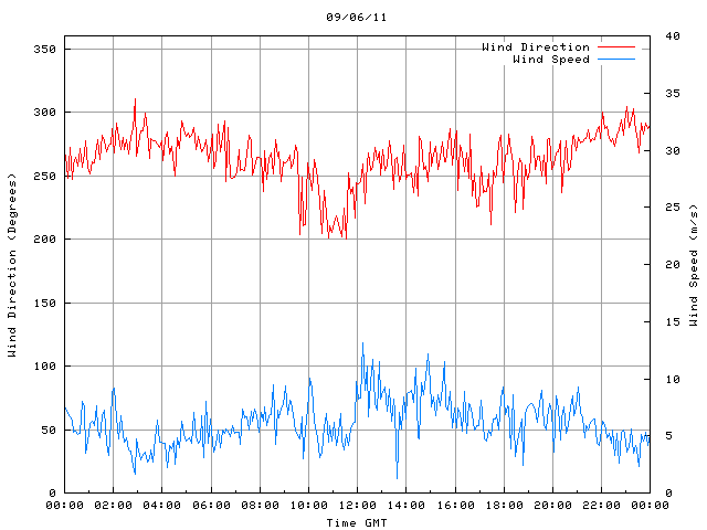 - Max Wind Speed: 13.2 ms-1 Time: 12:12:45 GMT