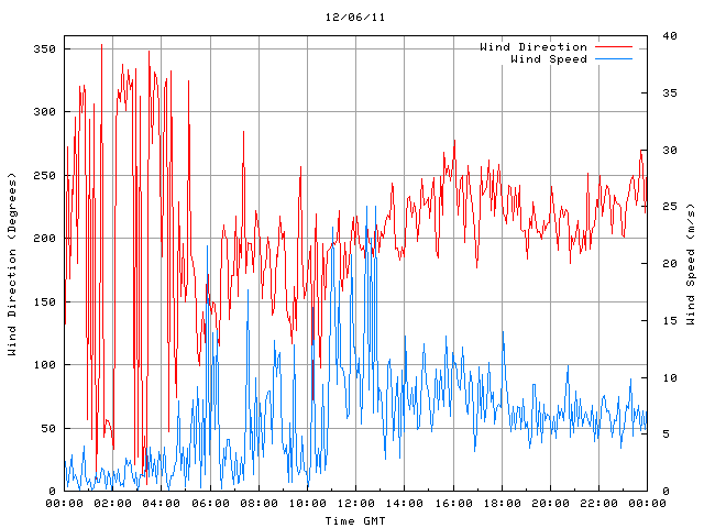 - Max Wind Speed: 25.0 ms-1 Time: 12:27:45 GMT