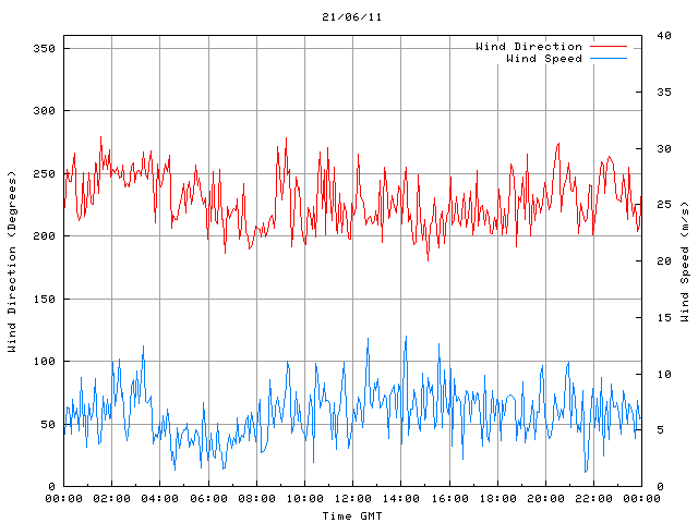 - Max Wind Speed: 13.3 ms-1 Time: 14:12:45 GMT