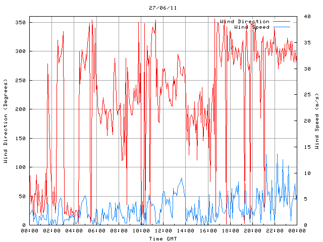 - Max Wind Speed: 13.6 ms-1 Time: 22:12:45 GMT