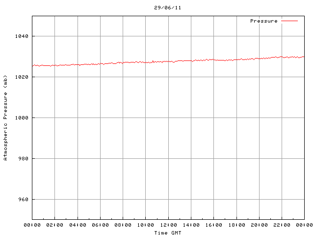 The PML meteorological station, situated on the south-west corner of the building roof, consists of a Hygroclip S3 temperature and humidity sensor housed in a radiation shield, a Mierij Meteo solid state wind sensor (MMW-005), a Chelsea instruments half-hemisphere PAR sensor, a Li-Cor pyranometer (LI-200SZ) and an Omni Instruments 6" tipping bucket raingauge (RG200). The data are logged every 5 minutes using a Pace Scientific XR5 data logger. The real-time rainfall data is likely in error - the correct values will be displayed after a time lag of approximately 24 hours. The meteorological station is sheltered from winds in the north-east and underestimates winds from this quarter. To use these data please contact Dr Tim Smyth.