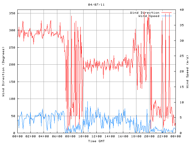 - Max Wind Speed: 10.2 ms-1 Time: 10:37:45 GMT