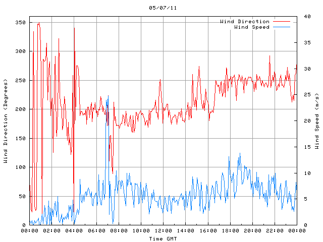 - Max Wind Speed: 24.8 ms-1 Time: 7:02:45 GMT