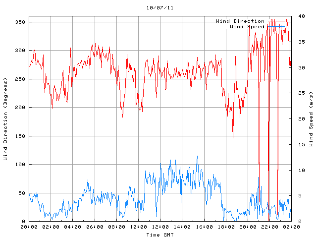 - Max Wind Speed: 12.7 ms-1 Time: 15:22:45 GMT