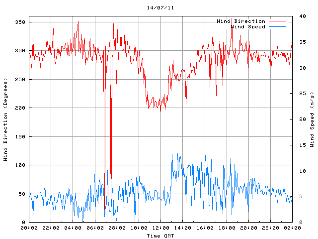 - Max Wind Speed: 13.3 ms-1 Time: 13:32:45 GMT