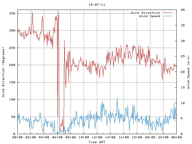 - Max Wind Speed: 11.7 ms-1 Time: 15:02:45 GMT