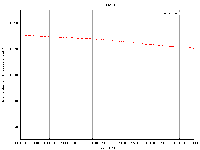 The PML meteorological station, situated on the south-west corner of the building roof, consists of a Hygroclip S3 temperature and humidity sensor housed in a radiation shield, a Mierij Meteo solid state wind sensor (MMW-005), a Chelsea instruments half-hemisphere PAR sensor, a Li-Cor pyranometer (LI-200SZ) and an Omni Instruments 6" tipping bucket raingauge (RG200). The data are logged every 5 minutes using a Pace Scientific XR5 data logger. The real-time rainfall data is likely in error - the correct values will be displayed after a time lag of approximately 24 hours. The meteorological station is sheltered from winds in the north-east and underestimates winds from this quarter. To use these data please contact Dr Tim Smyth.