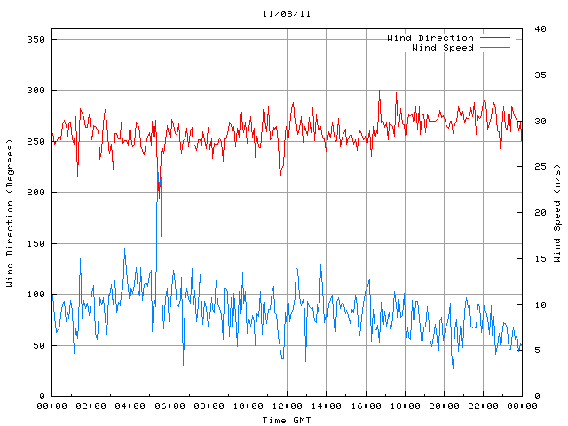 - Max Wind Speed: 24.9 ms-1 Time: 5:22:45 GMT