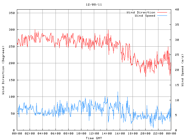 - Max Wind Speed: 12.7 ms-1 Time: 15:42:45 GMT