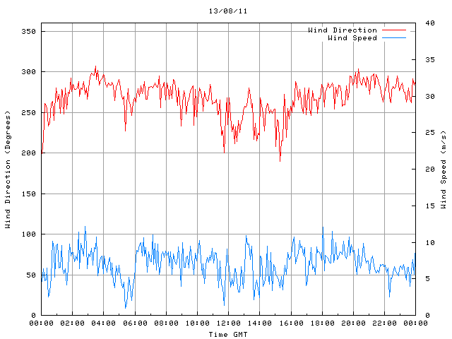 - Max Wind Speed: 12.2 ms-1 Time: 2:47:45 GMT