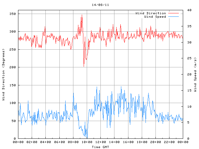 - Max Wind Speed: 16.2 ms-1 Time: 14:57:45 GMT