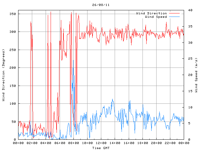 - Max Wind Speed: 24.5 ms-1 Time: 7:57:45 GMT