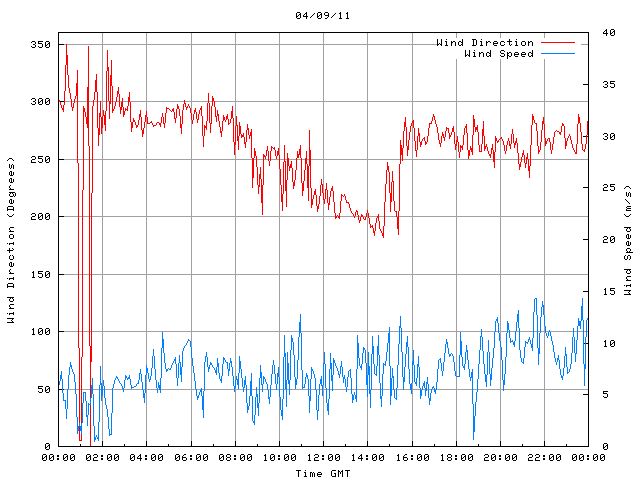- Max Wind Speed: 14.3 ms-1 Time: 21:37:45 GMT