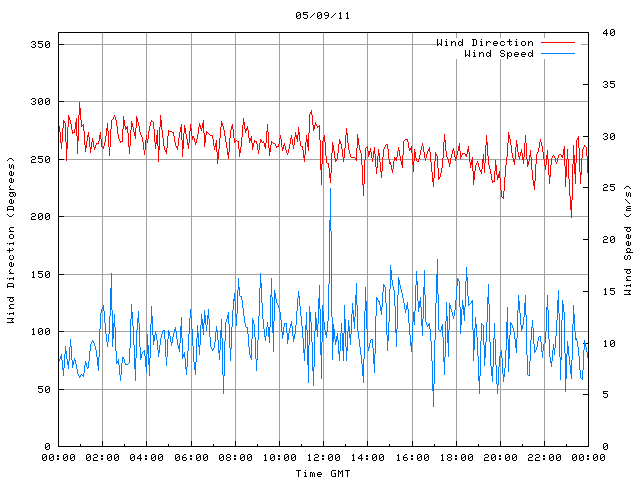 - Max Wind Speed: 24.9 ms-1 Time: 12:17:45 GMT